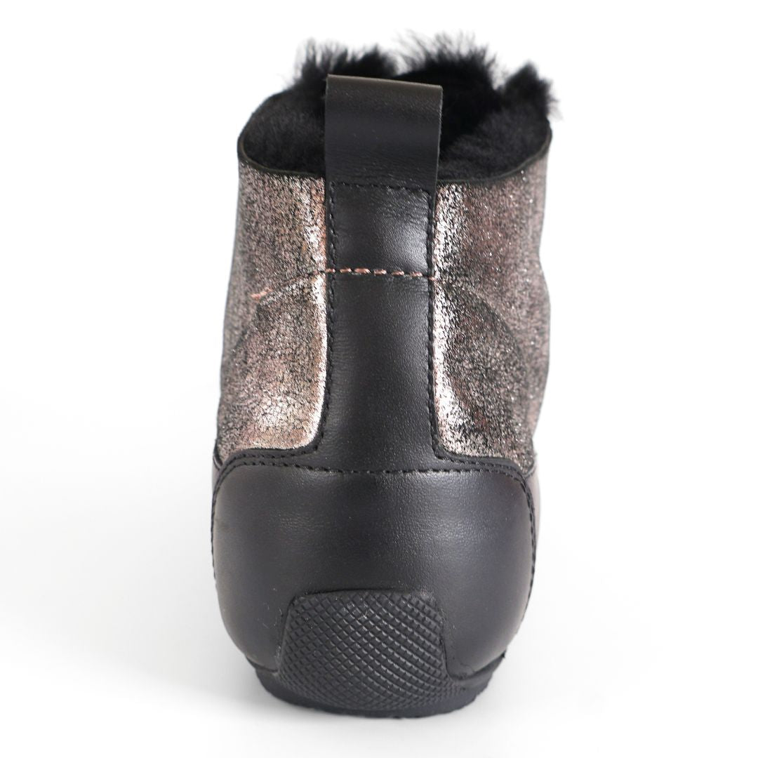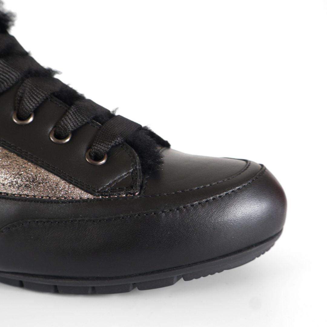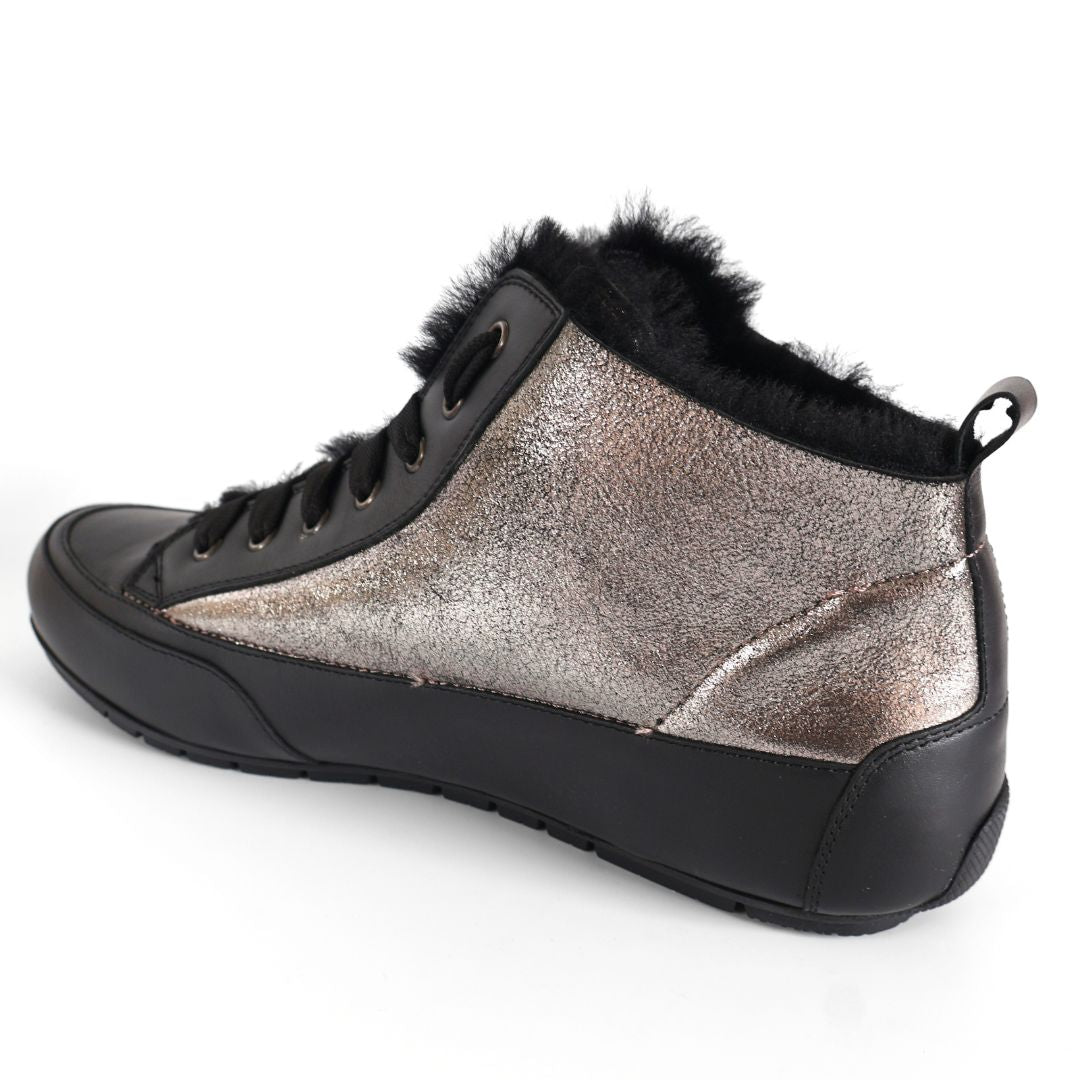 BLACK LEATHER UPPER WITH FUR - SILVER AND VARIOUS DESIGN DETAILING