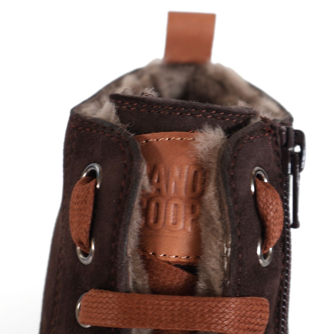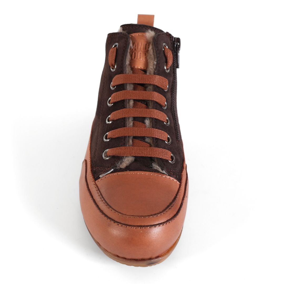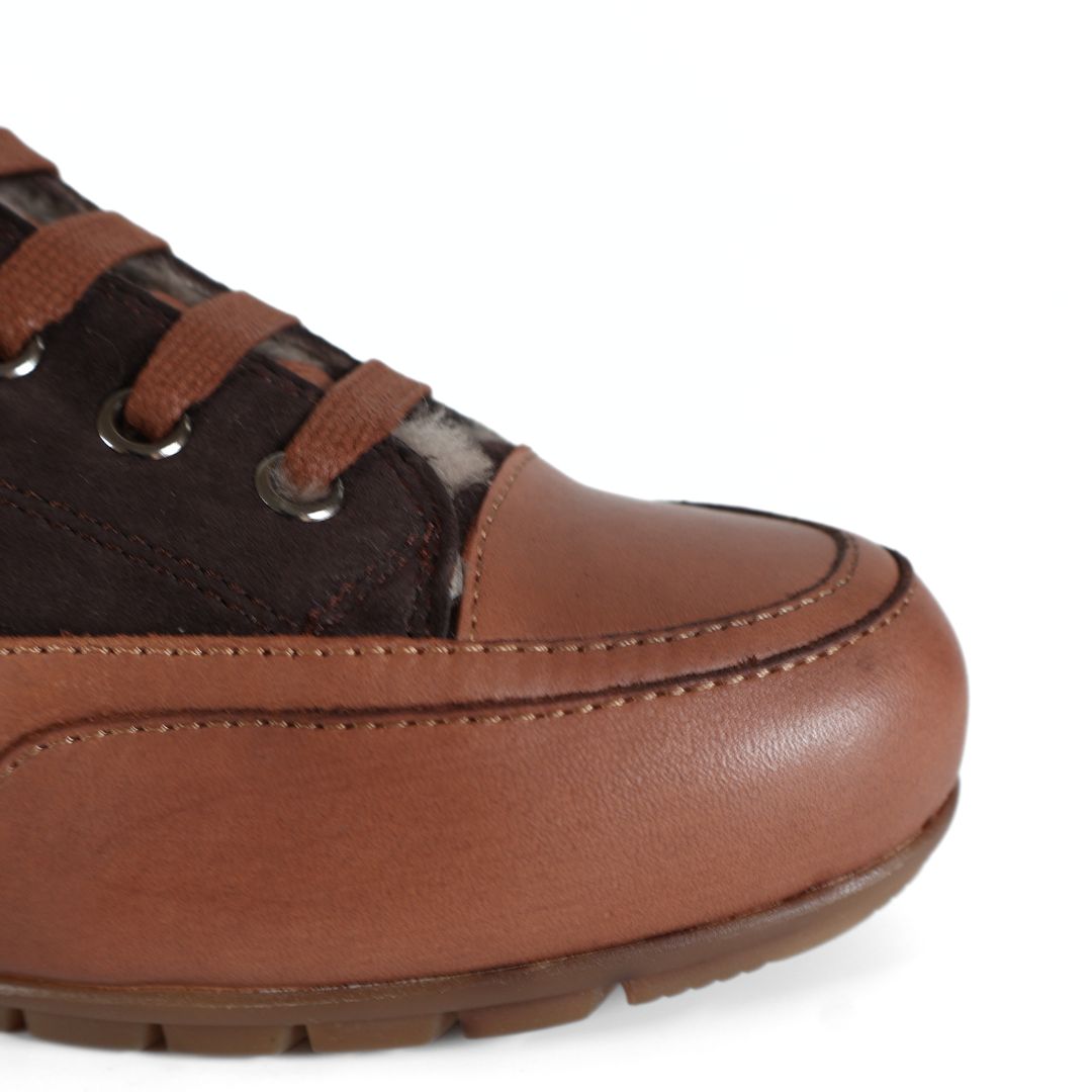 BROWN LEATHER AND SUEDE UPPER WITH FUR - SILVER AND VARIOUS DESIGN DETAILING