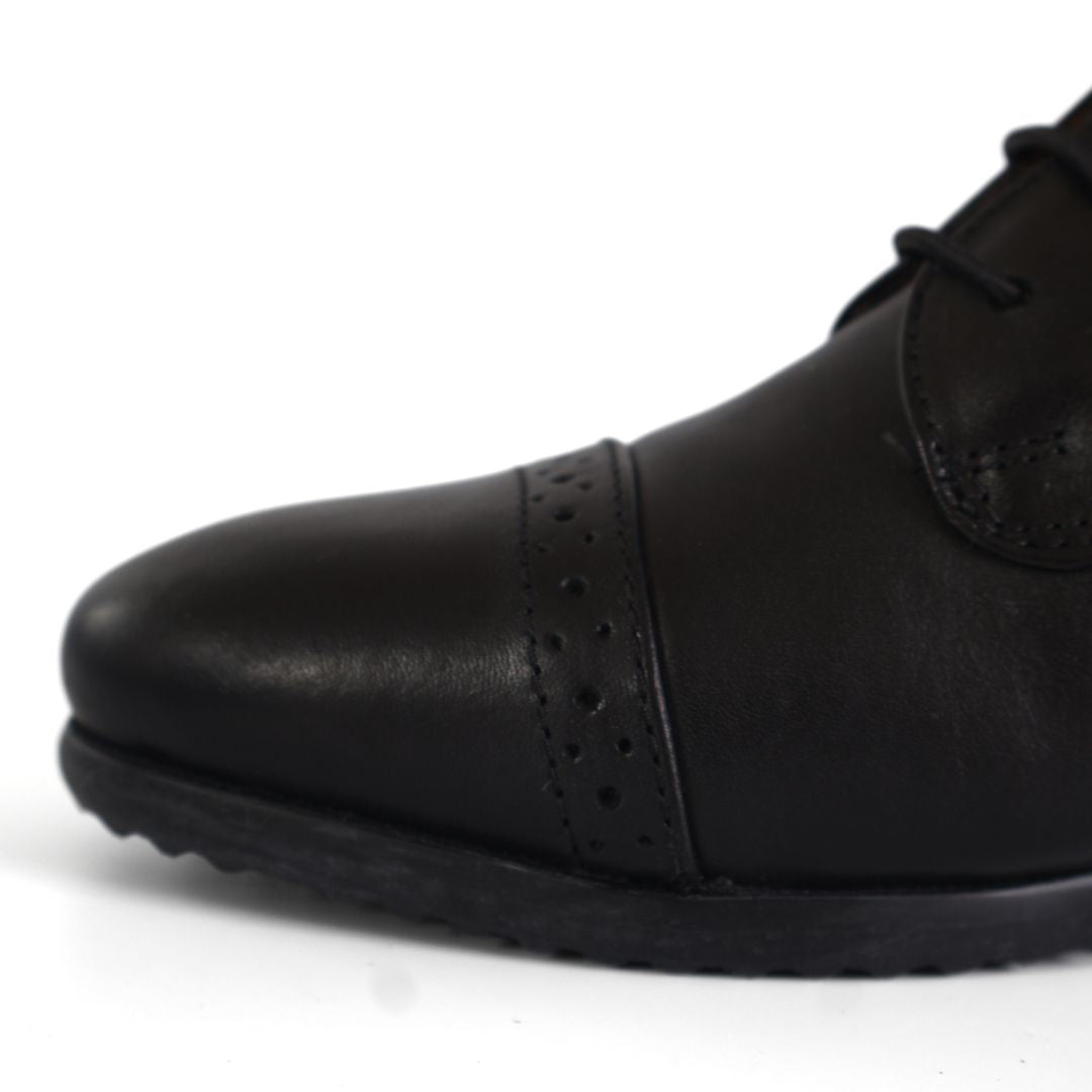 BLACK LEATHER UPPER WITH VARIOUS DESIGN DETAILING