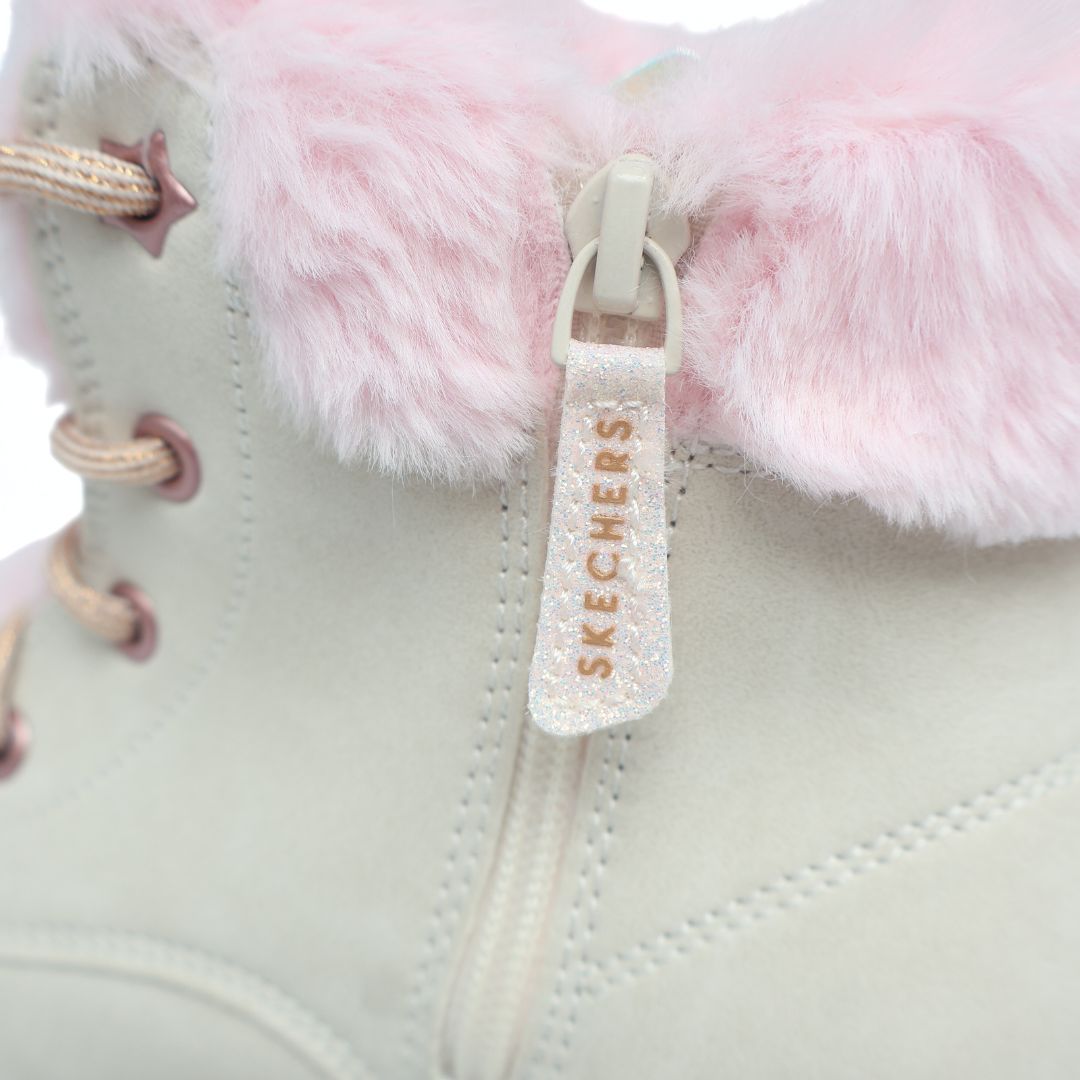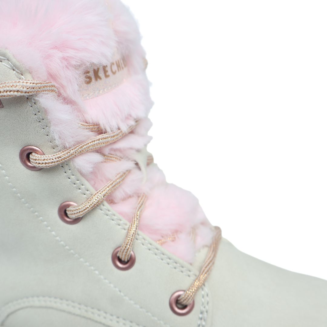 PINK FUR AND TEXTILE UPPER WITH VARIOUS DESIGN DETAILING