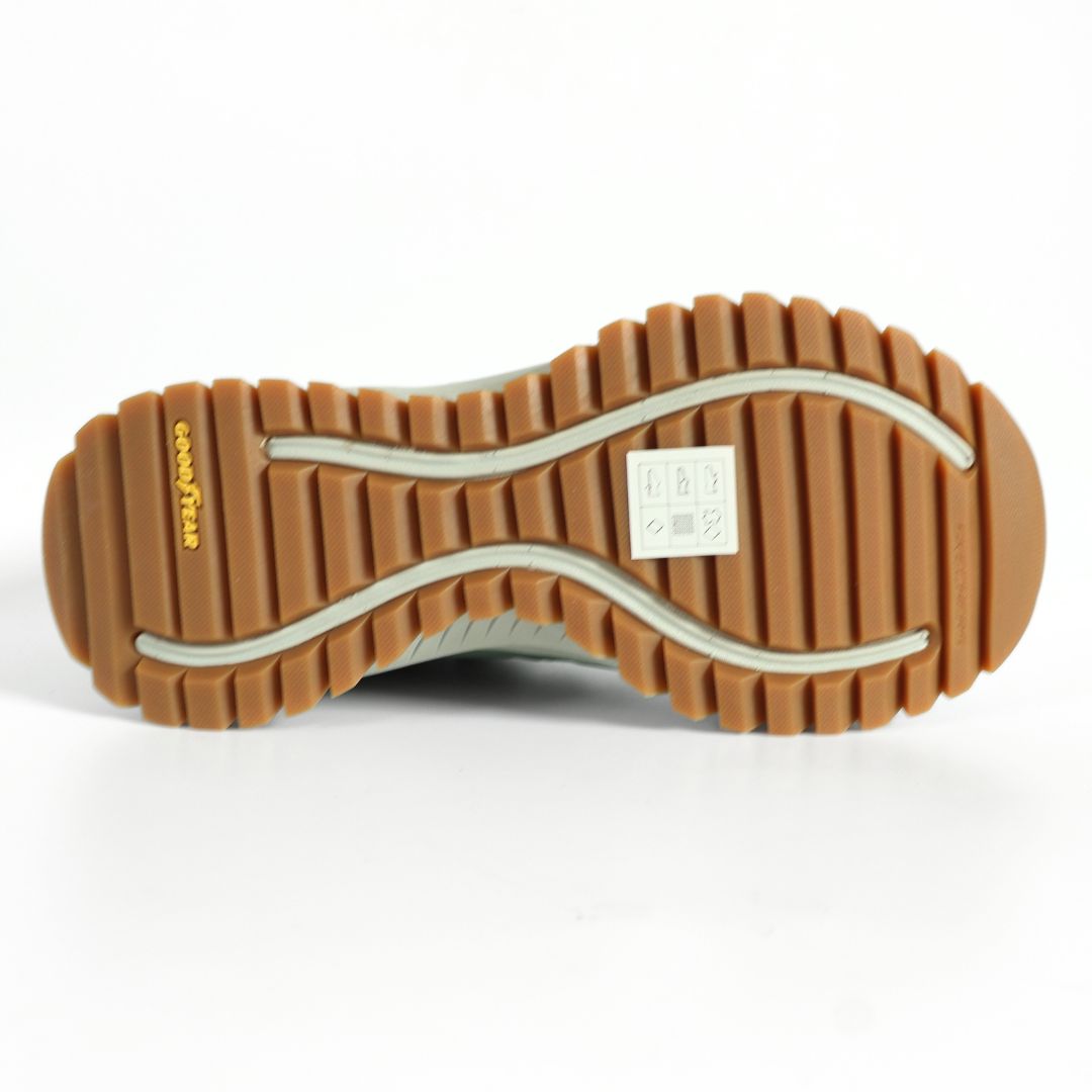 SAGE GREEN LEATHER AND SYNTHETIC UPPER WITH VARIOUS DESIGN DETAILING